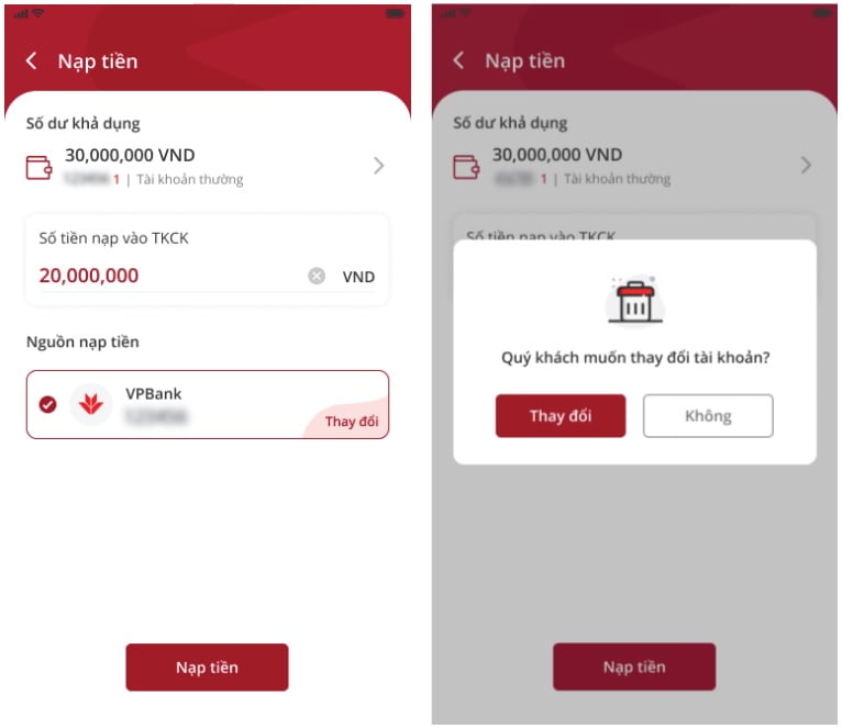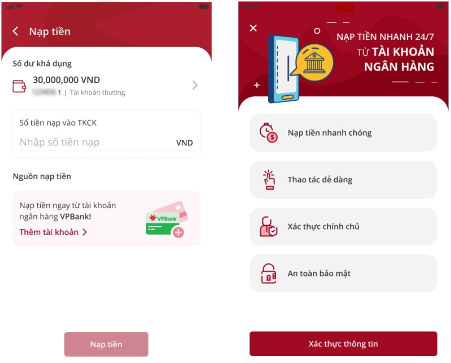 Nạp tiền chứng khoán từ tài khoản ngân hàng