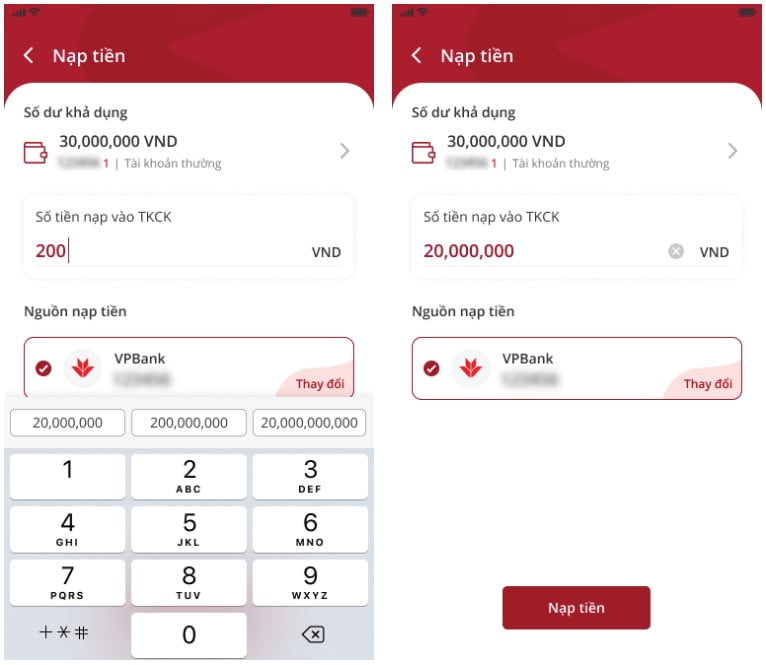 Nạp tiền chứng khoán từ tài khoản ngân hàng