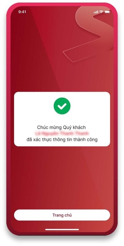 Bạn đã Xác thực OTP thành công, hiển thị màn hình thông báo đã xác thực thông tin thành công