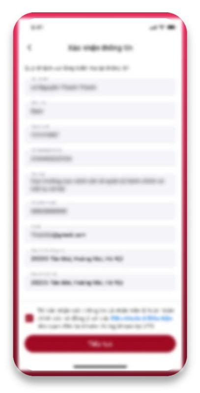 Bấm “Tiếp tục” để truy cập màn hình “Xác nhận thông tin