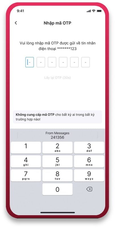 Nhập mã OTP bạn vừa nhận được trên điện thoại (nhập mật mã SMS OTP được gửi về số điện thoại đã đăng ký).